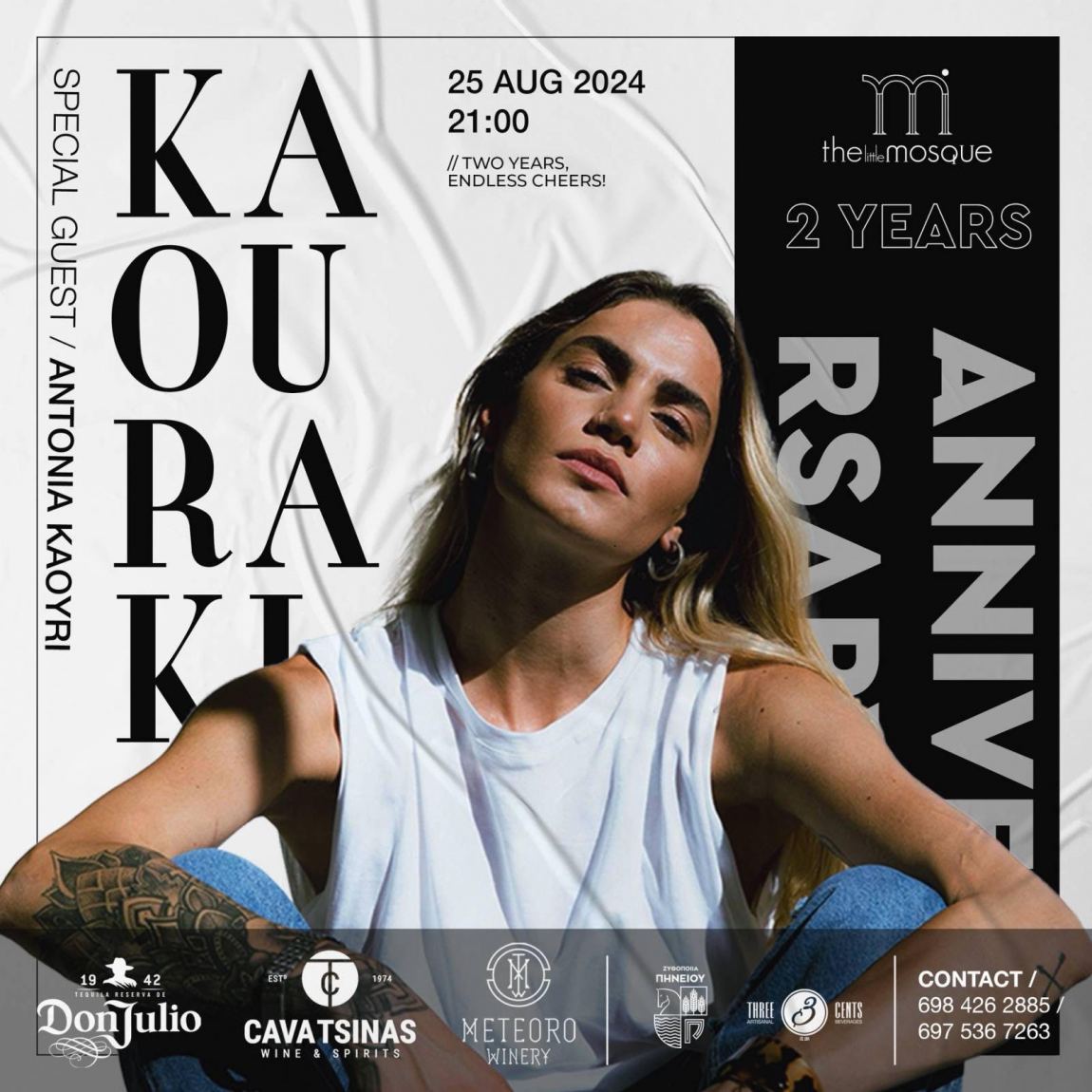 Καθώς οδεύει προς το κλείσιμο δυο ετών λειτουργίας, η ομάδα του The little mosque προετοιμάζεται για μια βραδιά που θα μείνει σε όλους αξέχαστη ! Την τελευταία Κυριακή του καλοκαιριού και πιο συγκεκριμένα στις 25/8 και ώρα 21:00 μ.μ. Υποδέχονται την ‘Καουράκη‘, την Αντωνία Καούρη όπως είναι και το πλήρες όνομα της . Ένα κορίτσι τόσο ταλαντούχο και λαμπερό που θα δώσει το έναυσμα της γιορτής σε αυτή τη τόσο ξεχωριστή βραδιά !