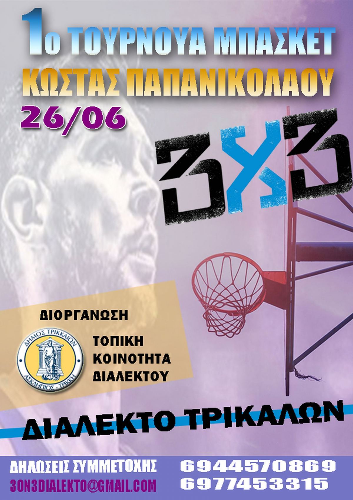 Η εκδήλωση θα ξεκινήσει από τις 17:30 στο νέο Γήπεδο Μπάσκετ που κατασκεύασε ο Δήμος Τρικκαίων στο Διαλεκτό, όπου θα τιμηθεί ο Κώστας Παπανικολάου.