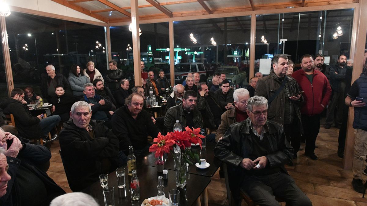Στο σημείο του μπλόκου είχε συγκεντρωθεί από νωρίς πλήθος αγροτών από το ίδιο το χωριό, από τα χωριά του δήμου Φαρκαδόνας , αλλά και από πολλά χωριά του νομού Τρικάλων . Επίσης, κάτοικοι της ευρύτερης περιοχής , ανάμεσά τους και πολλοί πληγέντες από τις πλημμύρες του Σεπτέμβρη ,καθώς και στελέχη της Τ.Ε. Τρικάλων του Κόμματος. Το Δ. Κουτσούμπα συνόδευαν ο Κύριλλος Παπασταύρου ,μέλος του Π.Γ. , η Μαρία Γαβαλά ,μέλος της ΚΕ & Γραμματέας Περιοχής Θεσσαλίας του Κόμματος , ο Κώστας Μπασδέκης ,μέλος της ΚΕ , καθώς και οι βουλευτές του ΚΚΕ στη Θεσσαλία Γιώργος Λαμπρούλης (Λάρισας) & Βασίλης Μεταξάς ( Μαγνησίας) .