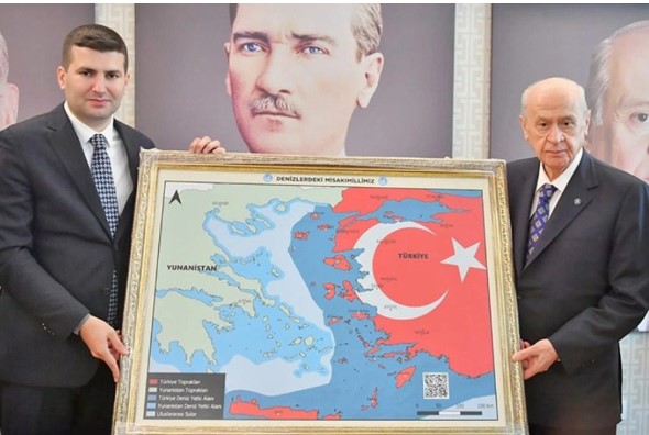 Σημειώνεται πως οι ακροδεξιοί εθνικιστές στην Τουρκία, οι Γκρίζοι Λύκοι, δημοσίευσαν τον χάρτη – πρόκληση του Μπαχτσελί που έδειχνε τουρκικό το μισό Αιγαίο και την Κρήτη, και έστειλαν μηνύματα στα… ελληνικά μέσω Twitter.