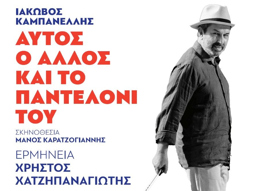 Με αφορμή το φετινό έτος Ιάκωβου Καμπανέλλη, ο δημοφιλής ηθοποιός Χρήστος Χατζηπαναγιώτης κι ο ηθοποιός και σκηνοθέτης, γνωστός μεταξύ άλλων και για τη θητεία του στο νεοελληνικό έργο, Μάνος Καρατζογιάννης παρουσιάζουν το μονόπρακτό του «Αυτός και το παντελόνι του», που