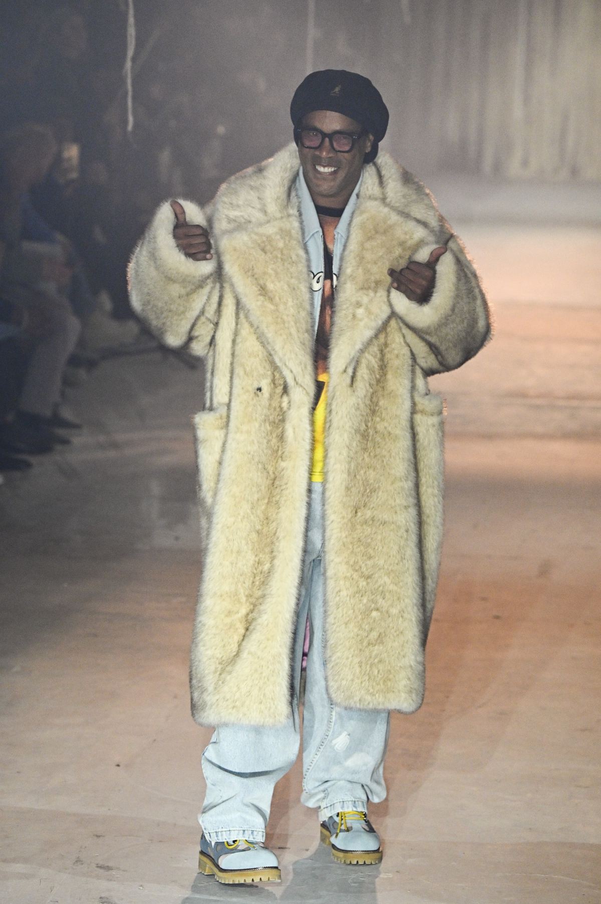 «Ελάτε, σηκωθείτε! Κατάφερα να φέρω πίσω τον Ροναλντίνιο για ένα fashion show του KidSuper» είπε ο fashion designer στο κοινό, όπως αναφέρει το περιοδικό GQ.