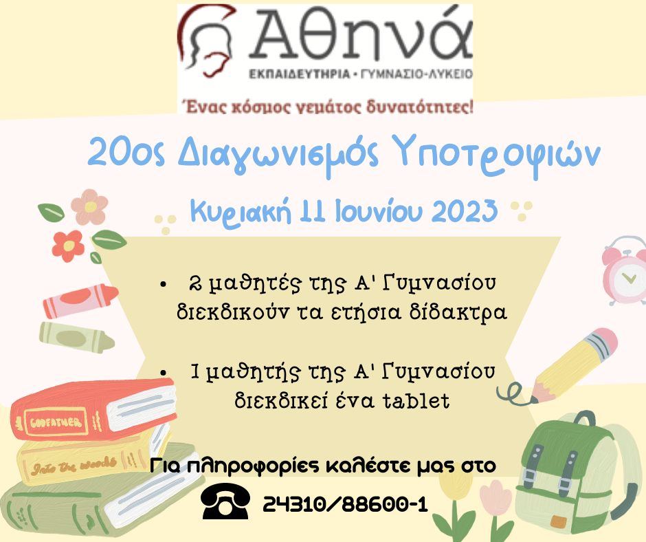 Ο 20ος Διαγωνισμός Υποτροφιών στα Εκπαιδευτήρια Αθηνά είναι πραγματικότητα!