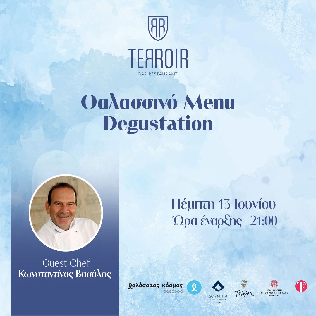 Κλείστε θέση για το πιο θαλασσινό μενού σήμερα Πέμπτη 13/6 στο TERROIR Bar Restaurant