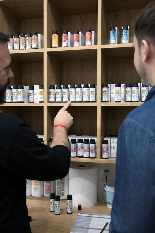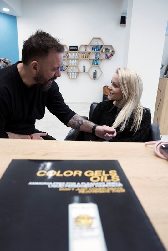 Oι κυρίες που εμπιστεύονται εδώ και χρόνια την βαφή των μαλλιών τους, την περιποίηση αλλά και το hair look τους στο κομμωτήριο του Γιάννη Πεταλά και εμπιστεύονται τα επαγγελματικά προϊόντα της Redken, απόλαυσαν τις πολύτιμες συμβουλές του global artist της REDKEN, Δημήτρη Μάγγου. Μας μύησε στα μυστικά περιποίησης για κάθε τύπο μαλλιών, αλλά μας σύστησε και την νέα σειρά Vegan βαφών χωρίς αμμωνία. Η σειρά είναι ιδιαίτερα αγαπητή και στο εξωτερικό, ενώ μούσα της είναι η διάσημη ηθοποιός Emma Stone.