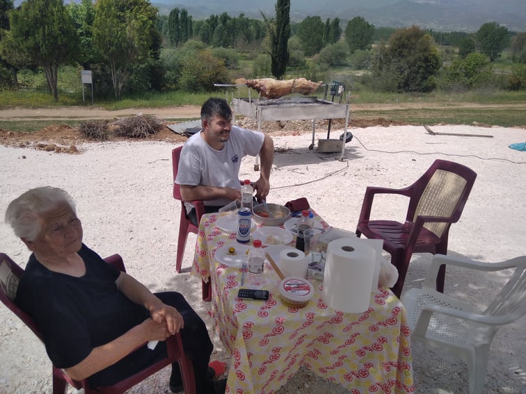 Όπως φαίνεται από φωτογραφίες του larissanet.gr, σεισμοπαθείς της Ελασσόνας έστησαν σήμερα Πάσχα ψησταριές μπροστά από τα κοντέινερ για να τηρήσουν, κάτω από αντίξοες συνθήκες, το πασχαλινό έθιμο με το σούβλισμα του οβελία.