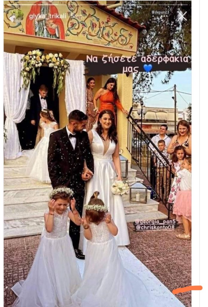 Κουμπάρες του ζευγαριού είναι η Ευαγγελία Παναγιωτοπούλου και η Παρασκευή Κοντοτόλη.