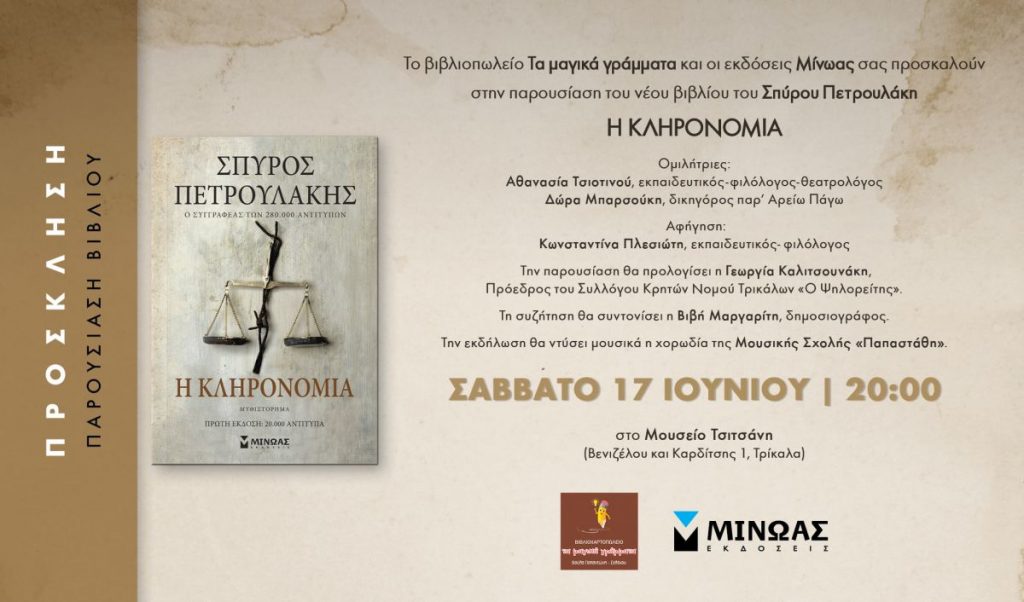 Παρουσίαση του νέου βιβλίου του Σπύρου Πετρουλάκη από το βιβλιοπωλείο ”Τα Μαγικά Γράμματα”