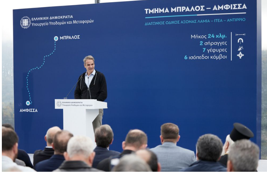 Ο κ. Μητσοτάκης, κατά τη διάρκεια της επιθεώρησης των εγκαταστάσεων, δεν έκρυψε το ενδιαφέρον του για τις λεπτομέρειες της κατασκευής, ιδιαίτερα στον τομέα της ασφάλειας της κυκλοφορίας. Χαρακτήρισε τον συγκεκριμένο διαγώνιο άξονα σαν την κατεξοχήν εναλλακτική διαδρομή μεταξύ της Δυτικής και της Κεντρικής Ελλάδας, σημειώνοντας ότι αυτό το έργο στην εξέλιξή του βγάζει από την οδική απομόνωση πολλές περιοχές της Φθιώτιδας, της Φωκίδας και της Αιτωλοακαρνανίας, ενώ με την ολοκλήρωσή του βελτιώνει τα μέγιστα και τις κυκλοφοριακές συνθήκες στον τουριστικό άξονα Δελφοί – Καλαμπάκα.