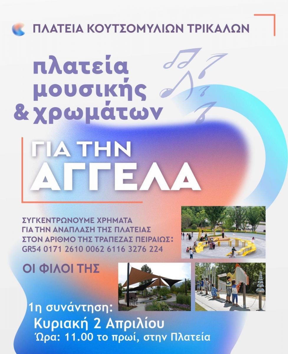 Μιλώντας με συγκίνηση εκ μέρους των φίλων της, η κ.Μαρία Καταβούτα πρόσθεσε ότι η ιδέα είναι να γίνει ένα πάρκο αναψυχής στην περιοχή στην μνήμη της Αγγέλας, ώστε τα παιδιά μας αλλά και όλοι εμείς να αποκτήσουμε ένα χώρο με χρώμα και μουσική όπως χαρούμενη & αισιόδοξη ήταν και η ίδια η Αγγέλα. Υπάρχει ένας λογαριασμός στήριξης στην προσπάθεια μας, αλλά σε καμία περίπτωση δεν κάνουμε έρανο, εμείς πρώτοι θα χρηματοδοτήσουμε το όραμα μας και όσοι θέλουν μπορούν να δώσουν την στήριξη τους.