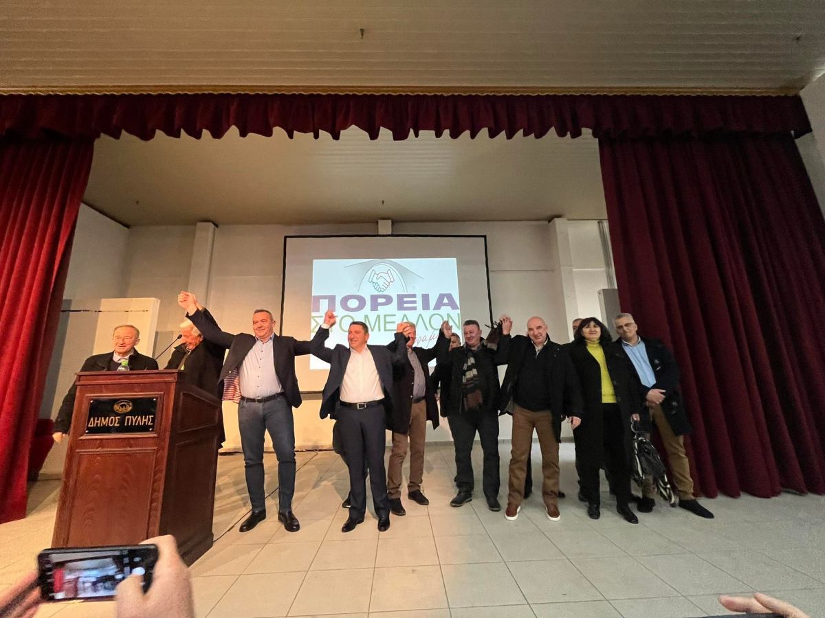 Το νέο συνδυασμό «Πορεία στο μέλλον», παρουσίασαν από κοινού σήμερα το μεσημέρι στις 12:00 στην αίθουσα του κατάμεστου Πολιτιστικού Κέντρου Πύλης, οι επικεφαλής των δύο παρατάξεων της Αντιπολίτευσης «Πύλης Όραμα» & «Πύλη Αξιών», Θεόδωρος Χήρας & Βαλάντης Τσιούτσιας, αντίστοιχα, μετά από τη συνένωσή τους.