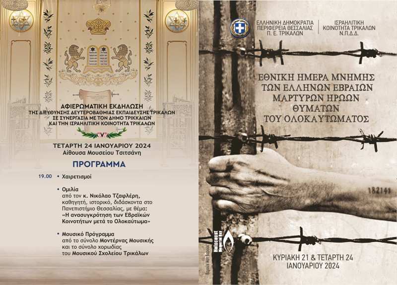 Η Περιφέρεια Θεσσαλίας και η Ισραηλιτική Κοινότητα Τρικάλων καλούν τους Τρικαλινούς συμπολίτες να παρευρεθούν στις εκδηλώσεις για την Εθνική Ημέρα Μνήμης των Ελλήνων Εβραίων