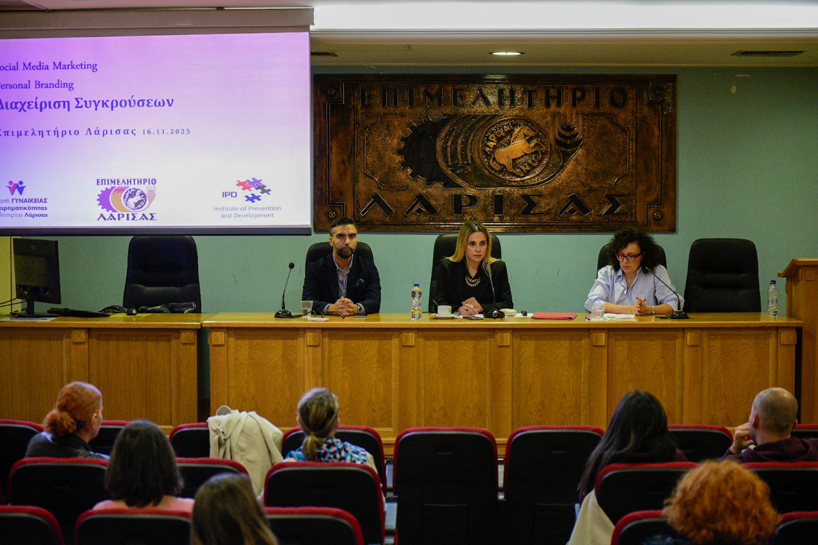 Με social media marketing, personal branding και διαχείριση συγκρούσεων καταπιάστηκε το δεύτερο εξειδικευμένο εργαστήριο για γυναίκες επιχειρηματίες, που έλαβε χώρα σήμερα, το απόγευμα της Πέμπτης, στην αίθουσα εκδηλώσεων του Εμπορικού Επιμελητηρίου Λάρισας.