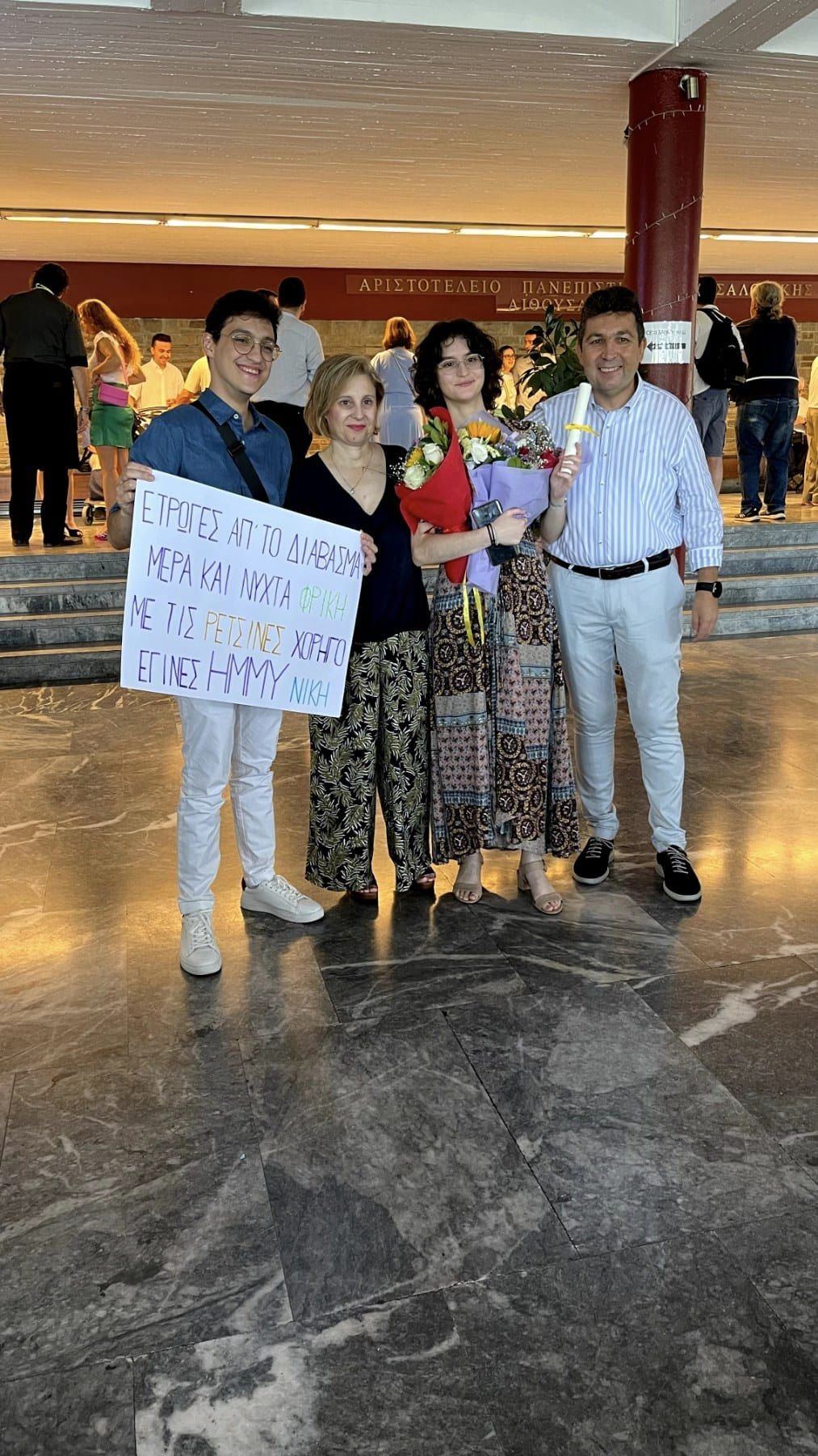 Μας έχεις κάνει για μία ακόμη φορά περήφανους. Είσαι πλέον και επίσημα πτυχιούχος της σχολής Ηλεκτρολόγων Μηχανικών και Μηχανικών Υπολογιστών του ΑΠΘ.Ένας κύκλος έκλεισε και ένας καινούριος θα ανοίξει σε λίγες μέρες. Συνέχισε με το ίδιο πείσμα και στοχοπροσήλωση και είμαστε σίγουροι πως θα τα πας περίφημα. Sky is the lìmit.Να σε φυλάει ο Θεός και να σου δίνει υγεία και ο κόσμος ανοίγεται μπροστά σου, έτοιμος να τον κατακτήσεις!!!