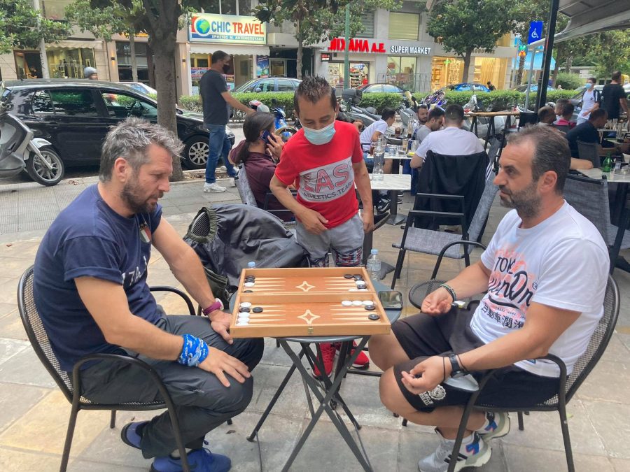 Πόρτες πλακωτό και φεύγα σε cafe της πόλης των Τρικάλων  …Όπου και νάσαι να νομίζεις ότι είσαι σε καφενείο και κάθε τόσο δώστου …τα ζάρια . Ατάκες πειράγματα και ευ αγωνίζεσαι, ανάμεσα στους Άρη Μπουκουβάλα και Φόρη Μούτσιο….Η αναμέτρηση είναι σε εξέλιξη και οι ατάκες δονούν  την ατμόσφαιρα… Τα ζάρια στο μάστορα….Όσο πιο βαθιά, τόσο πιο καλά,….Αυτό ούτε φυλακισμένοι δεν το παίζουνε.κτλ κτλ ….Με μάτι ατσίδα παρακολουθεί τις κινήσεις ο γνωστός Φάτος Νάνο κρατώντας την παρτίδα σε ένα επίπεδο …..και η ζωή συνεχίζεται ….