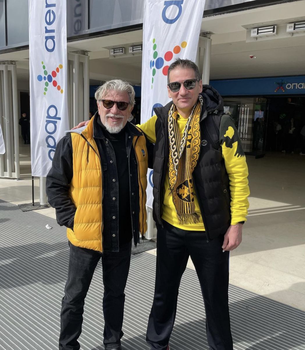 Εάν και «παίζουν μπάλα» σε διαφορετικά γήπεδα ,τουλάχιστον, οπαδικά ,συναντιούνται για να παρακολουθήσουν την ΑΕΚ . Ο λόγος φυσικά για τον ιδιαίτερα γνωστό Τρικαλινό Αιματολόγο , Κίμωνα Χαχάμη και τον δημοφιλή ηθοποιό ,σκηνοθέτη ,πολιτικό Βετεράνο πλέον , Γιάννη Βούρο .Στολισμένοι με τα χρωματα του δικεφάλου αετού ,δίνουν παρών σε πολλές αναμετρήσεις της ομάδας .