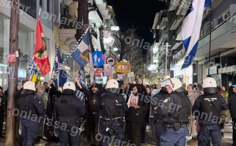 Ρασοφόροι και ένθερμοι χριστιανοί διαδήλωσαν κατά της παράστασης stand up comedy του Χριστόφορου Ζαραλίκου στη Λάρισα