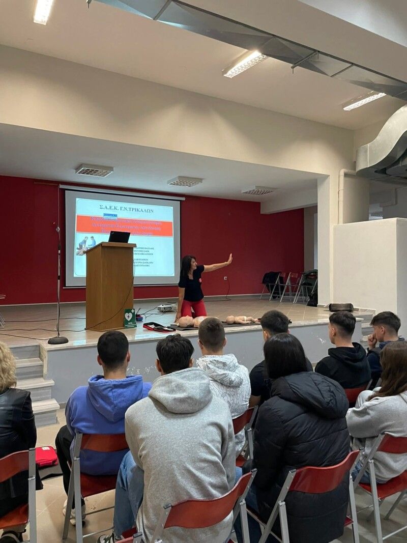 Η Σ.Α.Ε.Κ. Γενικού Νοσοκομείου Τρικάλων, σε συνεργασία με το Δήμο Μετεώρων και παρουσία του Συντονιστή Κοινωνικών Υπηρεσιών και Προέδρου του Δημοτικού Συμβουλίου κ Ρουστάνη Αθανάσιου, σε συνέχεια του πρωτότυπου προγράμματος εκπαίδευσης πολιτών, πραγματοποίησε την Τρίτη 4-11-2025, εκπαίδευση μαθητών του Γενικού Λυκείου Καλαμπάκας σε βασικές δεξιότητες Πρώτων Βοηθειών.