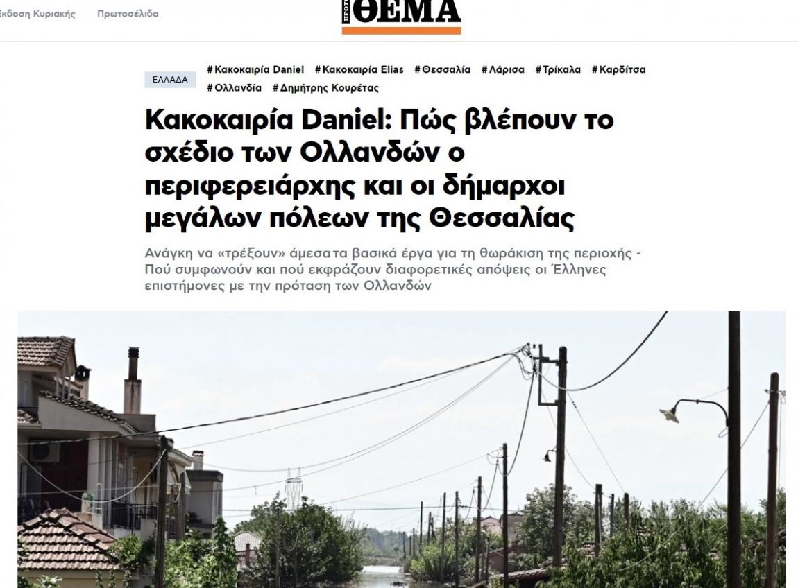 Σε δημοσίευμα με τίτλο «Κακοκαιρία Daniel: Πώς βλέπουν το σχέδιο των Ολλανδών ο