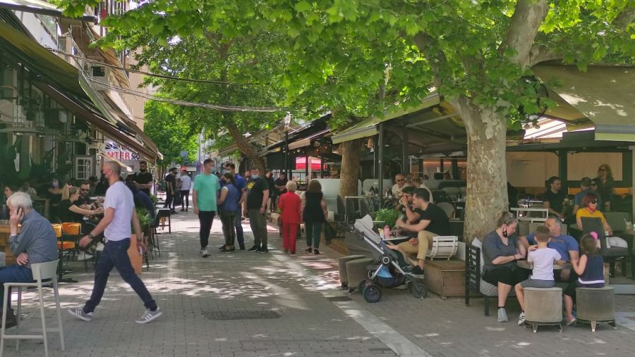 Μνήμες από τα την εποχή προ κορωνοϊού θυμίζουν οι εικόνες στο κέντρο της Λάρισας από το πρωί της Δευτέρας του Πάσχα, με την εστίαση και τις καφετέριες να υποδέχονται τον κόσμο στους εξωτερικούς χώρους.