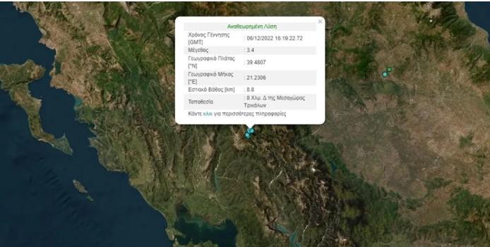 Συγκεκριμένα, η σεισμική δόνηση έγινε στις 18:19 το απόγευμα (6/12), οκτώ χιλιόμετρα δυτικά της Μεσοχώρας Τρικάλων.