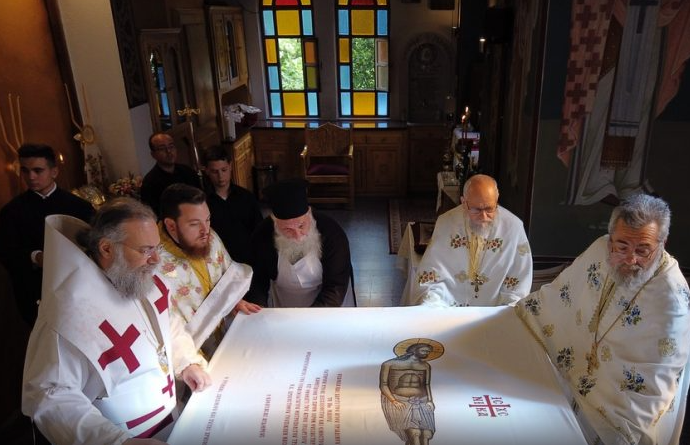 Σήμερα το πρωί και στον παραπάνω Ναό, τελέσθηκε η Ακολουθία του Όρθρου Χοροστατούντος του Σεβασμιωτάτου Μητροπολίτου Τρίκκης, Γαρδικίου και Πύλης κ.κ. Χρυσοστόμου, η Τελετή των Ιερών Εγκαινίων της διασαλευθείσης Αγ. Τράπεζας του Ναού και η πρώτη πανηγυρική Αρχιερατική Θεία Λειτουργία, μετά του ιερού αυτού γεγονότος.