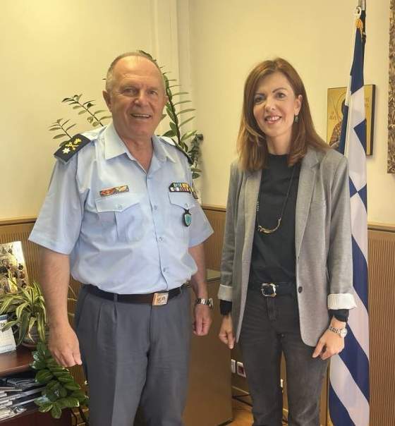 Στο Αστυνομικό Μέγαρο Λάρισας, η ατμόσφαιρα το μεσημέρι ήταν πιο… χαλαρή απ’ ό,τι θα περίμενε κανείς. Η Ανδριάνα Κομήτσα, Αντιπεριφερειάρχης Εθελοντισμού και Πρόνοιας, μπήκε με χαμόγελο και διάθεση συζήτησης, ενώ ο Τρικαλινός Ταξίαρχος Στυλιανός Μπιλιάλης την υποδέχτηκε εγκάρδια – οι δυο τους φαίνεται να έχουν ήδη βρει κοινό βηματισμό.