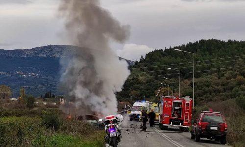 Σοβαρό τροχαίο με δύο τραυματίες- Κάηκε το ένα ΙΧ