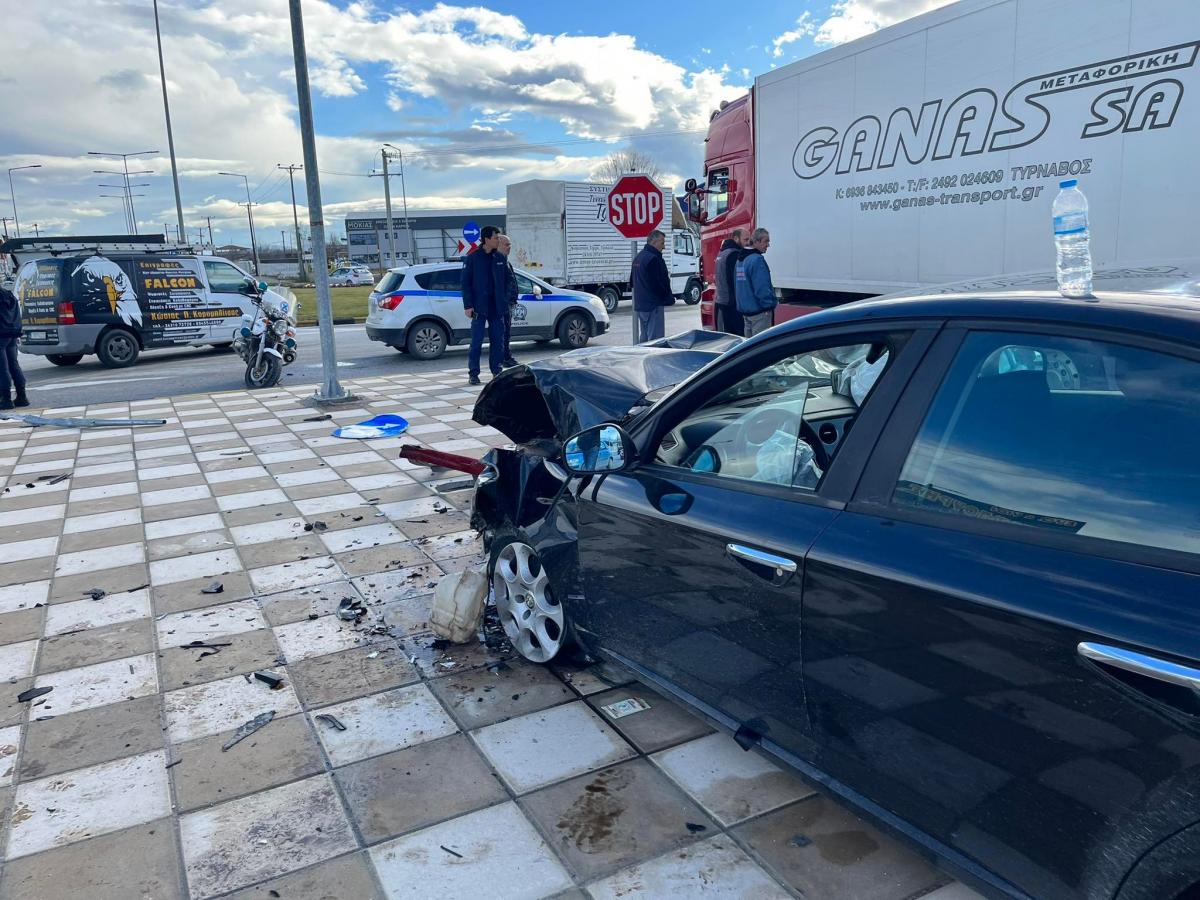 Σοβαρό τροχαίο στον κόμβο Λαρίσης ανάμεσα σε ΙΧ & νταλίκα