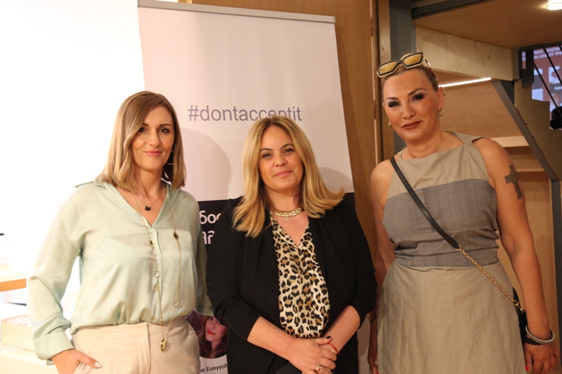 Ακολούθως, η ψυχολόγος Μαρία Γαλάνη, επεσήμανε ότι στόχος της καμπάνιας Dontaccepit «είναι να απευθυνθεί στο ευρύ κοινό, στο γείτονα, το φίλο, φίλη, συγγενή, συνάδελφο, που μπορεί να ακούει, βλέπει, υποψιάζεται, γνωρίζει κάποιο περιστατικό έμφυλης βίας ωστόσο δεν παρεμβαίνει, θεωρώντας ότι πρόκειται για ιδιωτική υπόθεση».