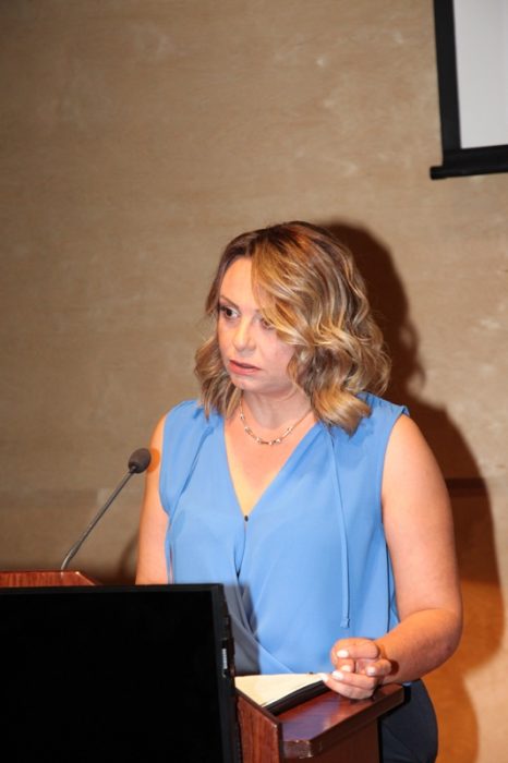 Tέλος, την εκδήλωση έκλεισε με την εντυπωσιακή ομιλία της, η Υποδιοικήτρια του τμήματος Ασφάλειας Τρικάλων κ. Σόνια Μεγαρχιώτη, η οποία ανέλυσε το ρόλο της Αστυνομίας στην αντιμετώπιση της ενδοοιγενειακής βίας.  «Η παρέμβαση της Αστυνομίας έχει ως κεντρικό άξονα την προστασία των θυμάτων βίας , τη διερεύνηση της τέλεσης αξιοποίνων πράξεων και τη συλλογή των αποδεικτικών στοιχείων της εγκληματικής συμπεριφοράς για την παραπομπή του δράστη στη δικαιοσύνη. Ο αστυνομικός κατά το χειρισμό μιας υπόθεσης ενδοοικογενειακής βίας απαιτείται να επιδείξει: Σοβαρότητα,Υπομονή,Ευαισθησία,Αμεροληψία,Αντικειμενικότητα,Διακριτικότητα,Απόλυτη εχεμύθεια.  Τα «πρόσωπα» της ενδοοικογενειακής βίας είναι πολλά, όπως και οι τρόποι εκδήλωσής της. Ο δρόμος από τη λεκτική βία, στην ψυχολογική κακοποίηση και εντέλει στην αφαίρεση μίας ανθρώπινης ζωής, δεν είναι ιδιαιτέρως μακρύς, εάν αναλογιστεί κάποιος τα περιστατικά δολοφονιών που έχουν δει κατά καιρούς το «φως» της δημοσιότητας. Είναι πολύ δύσκολο το έργο μας τόνισε καθώς αντιμετωπίζουμε καθημερινά αντικειμενικές δυσκολίες, με τα θύματα και την προστασία τους.”