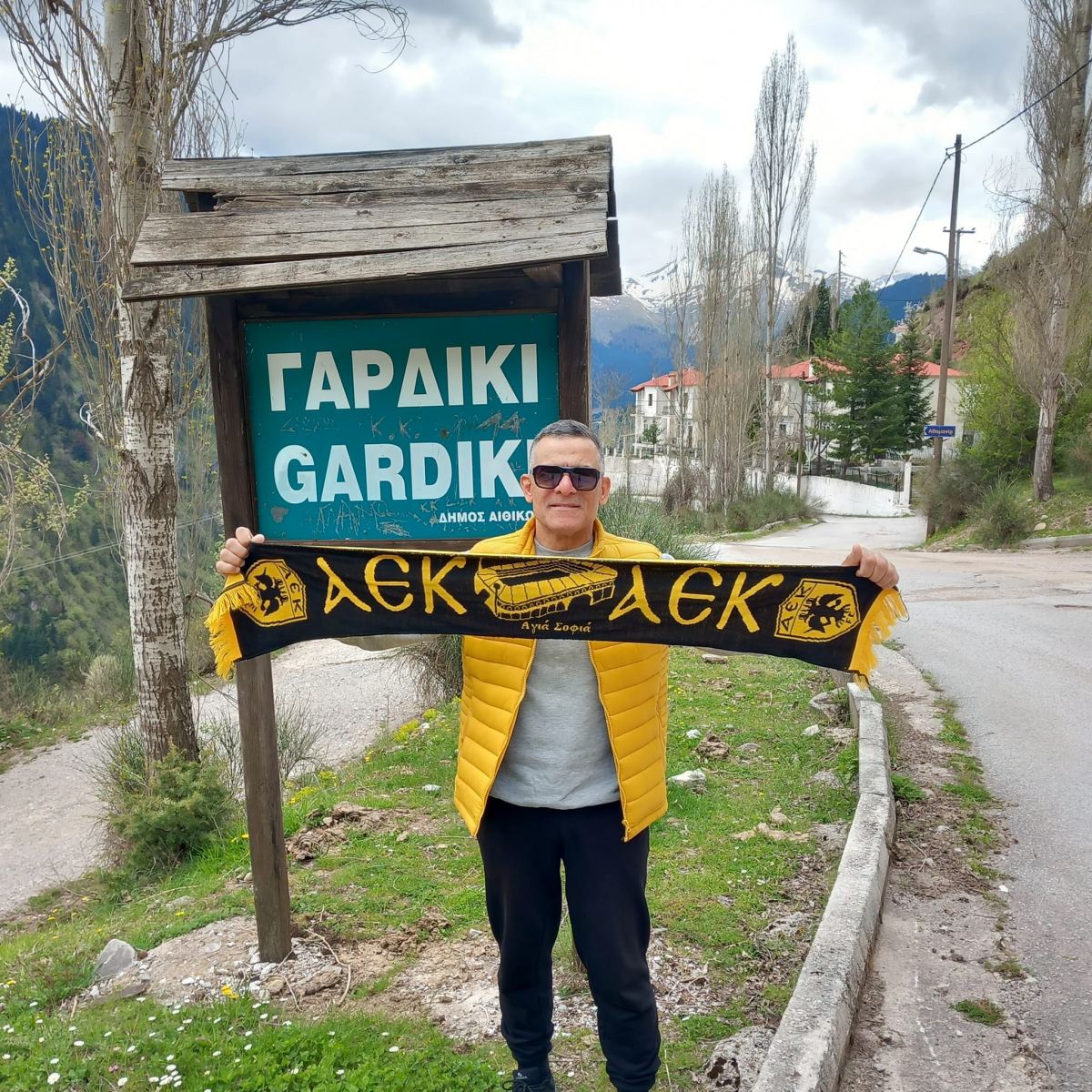 Τα βουνά φαίνεται να πήρε ο γνωστός εκπαιδευτικός και λαϊκός καλλιτέχνης Νίκος Κεραμιώτης .Ο κατά κόρον Μαραντόνα …αποφάσισε να μην μεταβεί   στην ιδιαίτερη πατρίδα του την Εύβοια και να απολάυσει το ευχάριστο τριήμερο στα χωριά του ορεινού μας όγκου με επίκεντρο το Γαρδίκι .Μάλιστα ως φαν της ΑΕΚ χάρισε στους φίλους του μια χαρακτηριστική φωτό έξω από το γνωστό βλαχοχώρι ενόψει του μεγάλου αγώνα μεταξύ ΑΕΚ και Παναθηναϊκού …
