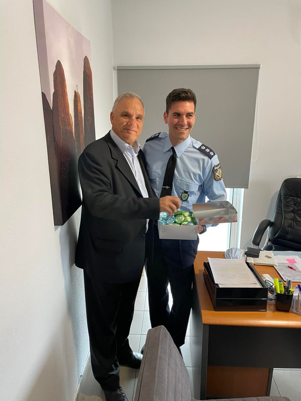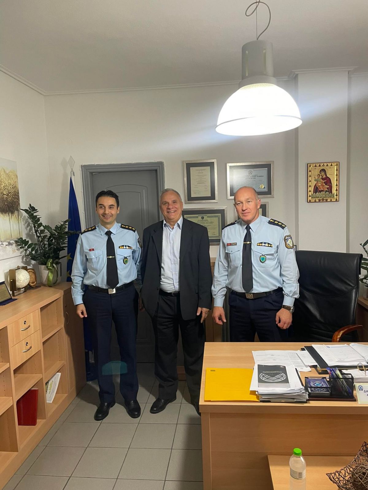- Την Αστυνομική Διεύθυνση Τρικάλων επισκέφθηκε ο πρ. Νομάρχης-Βουλευτής και εκ νέου υποψήφιος της Νέας Δημοκρατίας Ηλίας Βλαχογιάννης, στα πλαίσια των επαφών του με φορείς και πολίτες του Νομού μας.Τον Ηλία Βλαχογιάννη υποδέχτηκαν εγκάρδια ο Αστυνομικός Διευθυντής Δημήτρης Μήτραινας ,ο Αν. Διευθυντής Αστ. Διευθυντής Θανάσης Καπάς, τα στελέχη και το προσωπικό της Υπηρεσίας.Ηλίας Βλαχογιάννης με ιδιαίτερη χαρά χαιρέτισε τους πρώην συναδέλφους του και τους συγχάρηκε για το δύσκολο και κρίσιμο έργο που επιτελούν.Στη συνέχεια επισκέφθηκε τα γραφεία των τοπικών Ενώσεων Αστυνομικών Υπαλλήλων και Διεθνούς Ένωσης Αστυνομικών (IPA),με τους οποίους συνομίλησε για τα προβλήματα που τους απασχολούν.