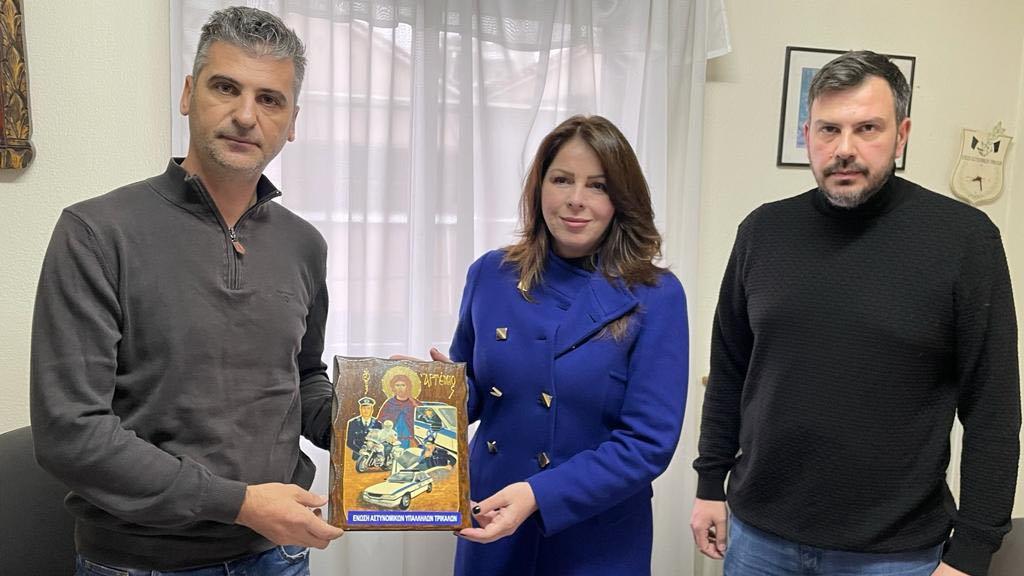 Κατά την επίσκεψή της, η κυβερνητική Βουλευτής δέχθηκε τις ευχαριστίες σύσσωμης της Αστυνομικής Διεύθυνσης, για την καίρια συμβολή της στην επίτευξη χρόνιων και πάγιων αιτημάτων της Ένωσης Αστυνομικών Υπαλλήλων Τρικάλων, όπως η ίδρυση Τμήματος Μεταγωγών στο Νομό Τρικάλων, αλλά και το μείζονος σημασίας ζήτημα της Αναβάθμισης του Τ.Α Τρικάλων σε Υποδιεύθυνση Ασφαλείας.