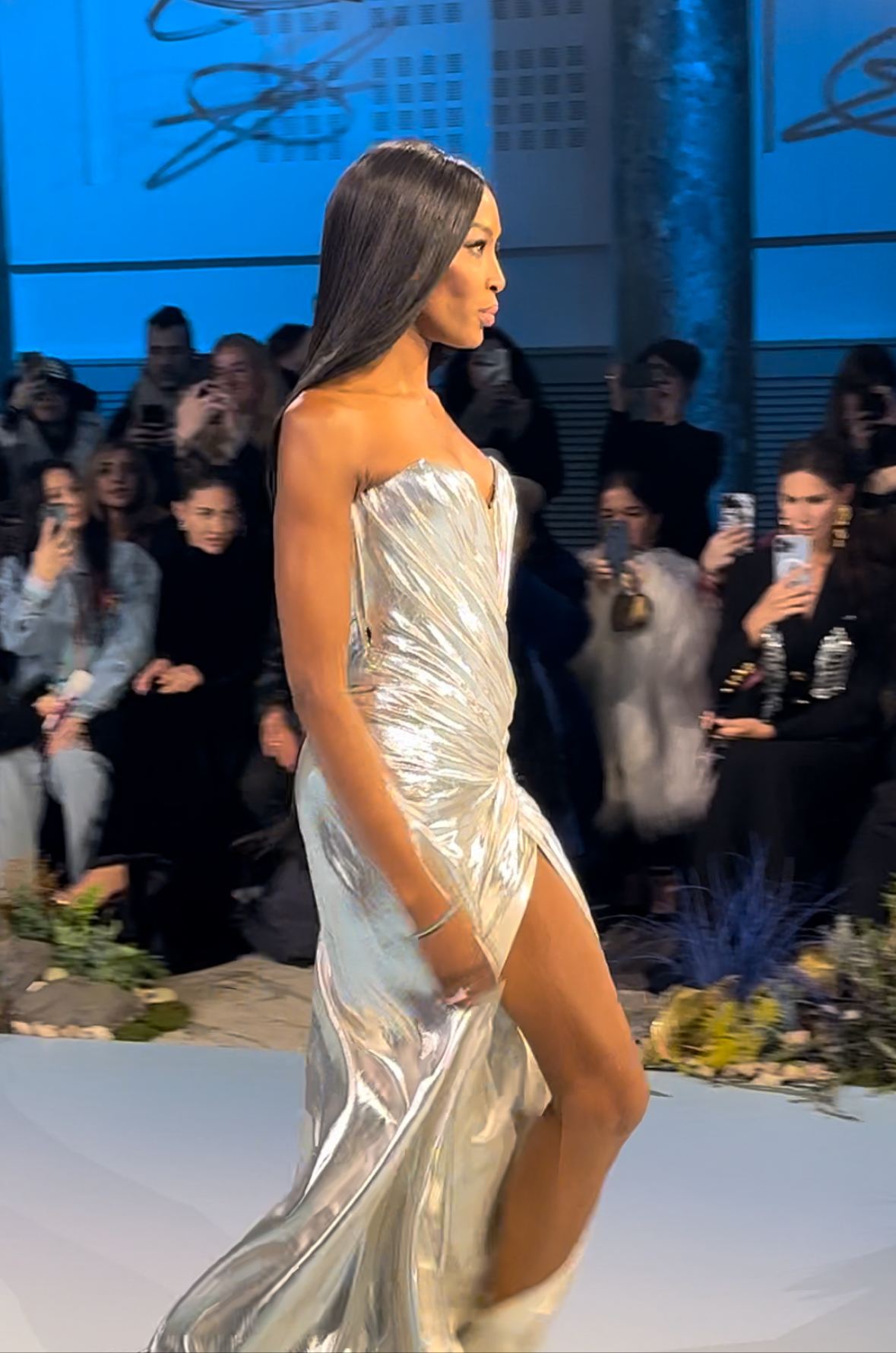 Η βετεράνος της μόδας άνοιξε το σόου της Σίλιας Κριθαριώτη, φορώντας μια πολύ εντυπωσιακή δημιουργία της διεθνούς φήμης σχεδιάστριας. Συγκεκριμένα έβαλε ένα μεταλιζέ ασημί φόρεμα και περπάτησε στην πασαρέλα με την χαρακτηριστική της αυτοπεποίθηση.