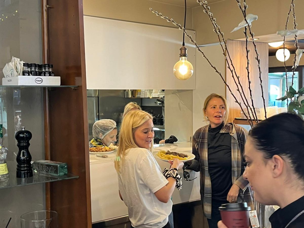 Μάλιστα κάποια στιγμή επισκέφτηκε και την κουζίνα για να συγχαρεί την σεφ καθώς το πιάτο με την μοσχοροκεφαλή απογείωσε την γεύση της.