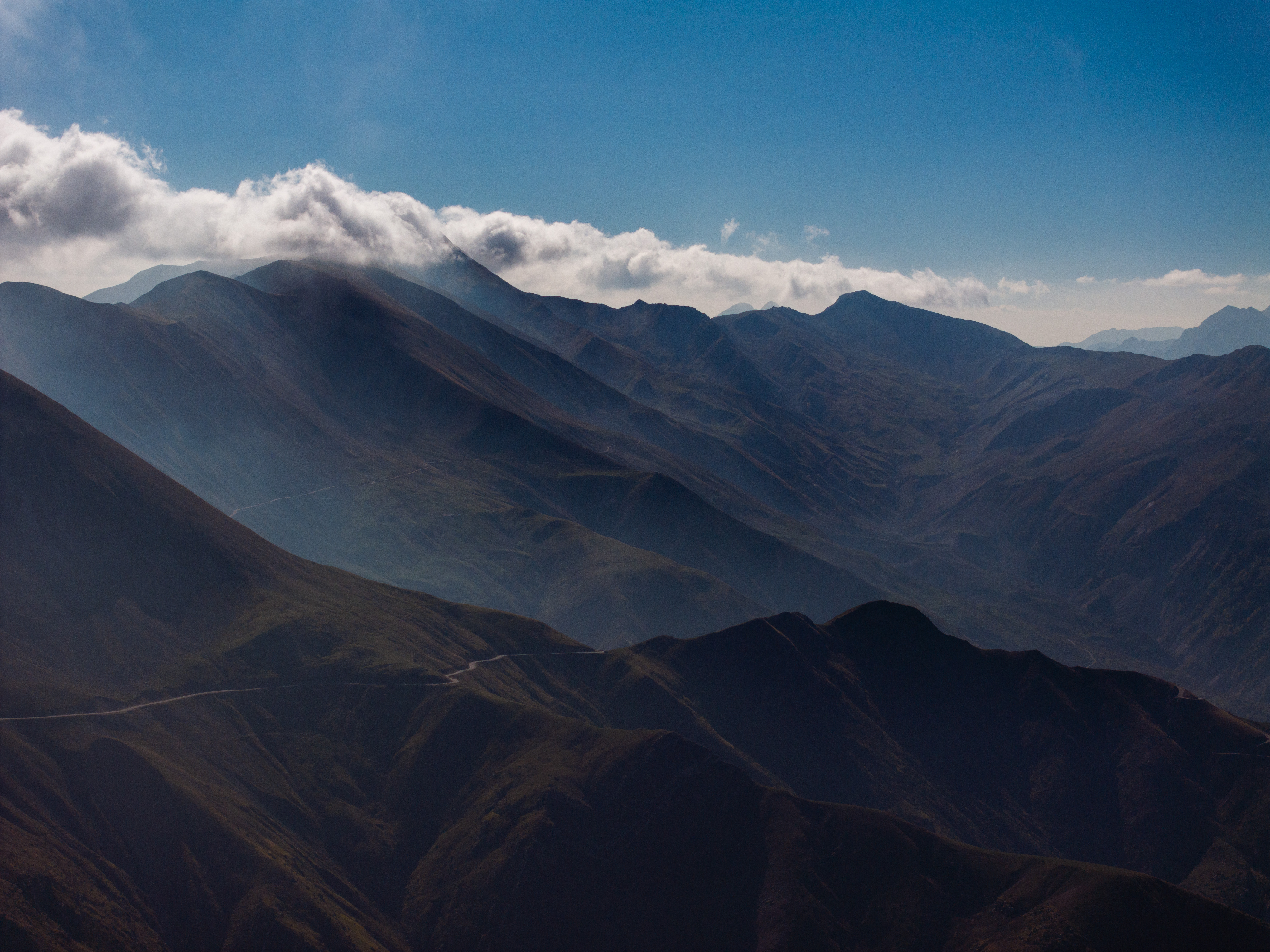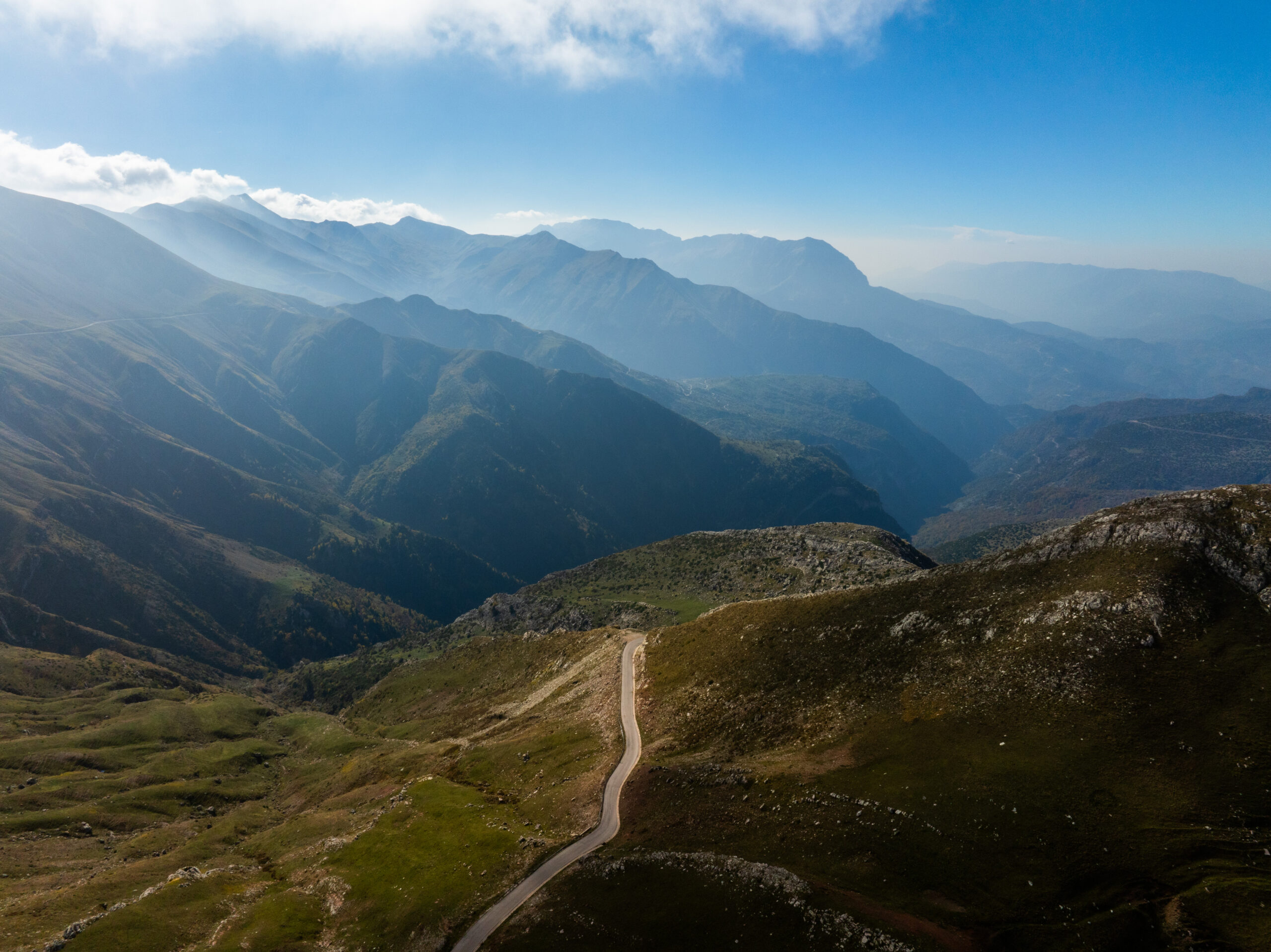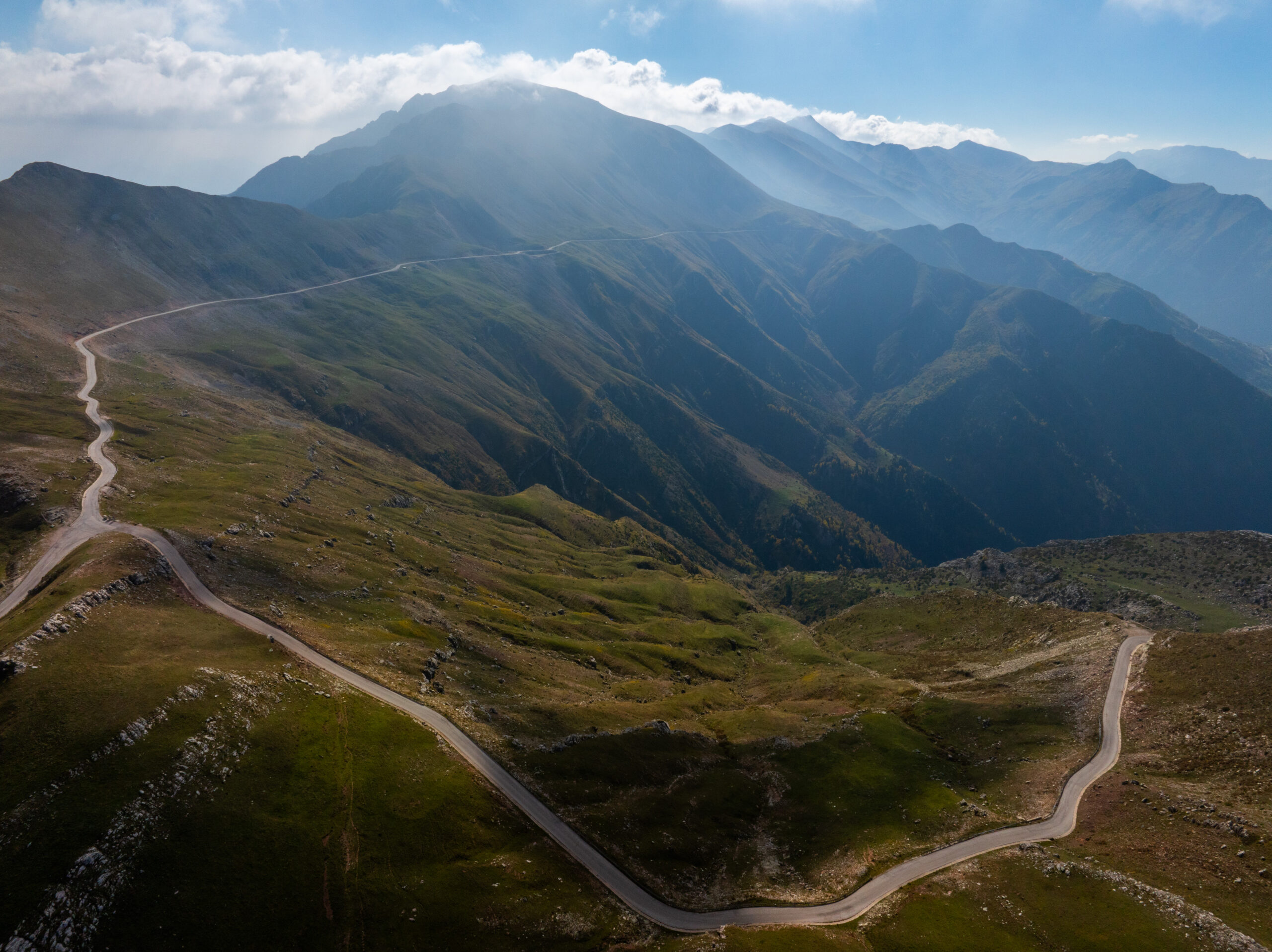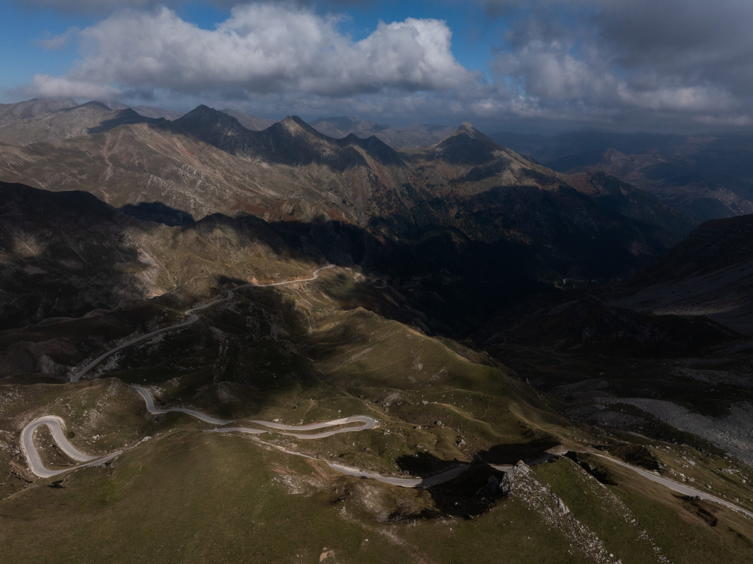Συνεχίζουμε και φτάνουμε στο ψηλότερο σημείο της διαδρομής. Είναι εδώ που έχοντας πλέον περάσει στην Ήπειρο, απλώνονται μπροστά μας τα Τζουμέρκα. Εδώ, μία χαρακτηριστική πέτρινη στήλη, που σηματοδοτεί το υψηλότερο σημείο του περάσματος, στα 1.905 μέτρα. Σταματήσαμε. Έπρεπε. Η θέα ήταν καθηλωτική και μοναδική. Πίσω μας η Θεσσαλία απλωνόταν μέχρι εκεί που έφτανε το μάτι, μπροστά μας ατελείωτες βουνοκορφές. Και μόνο για αυτή την εικόνα αξίζει έστω μία φορά να βρεθούμε όλοι μας σε αυτό το σημείο. Είσαι τόσο μακριά από όλους και ταυτόχρονα τόσο κοντά με όλους εκείνους που αγαπάμε. Αυτή το απέραντο μωσαϊκό, δημιουργεί άλλες προτεραιότητες και έστω για λίγο θα μας κάνει όλους να θέσουμε σωστές προτεραιότητες. Τα σύννεφα έμοιαζαν τόσο κοντά που νόμιζες ότι μπορούσες να τα αγγίξεις.