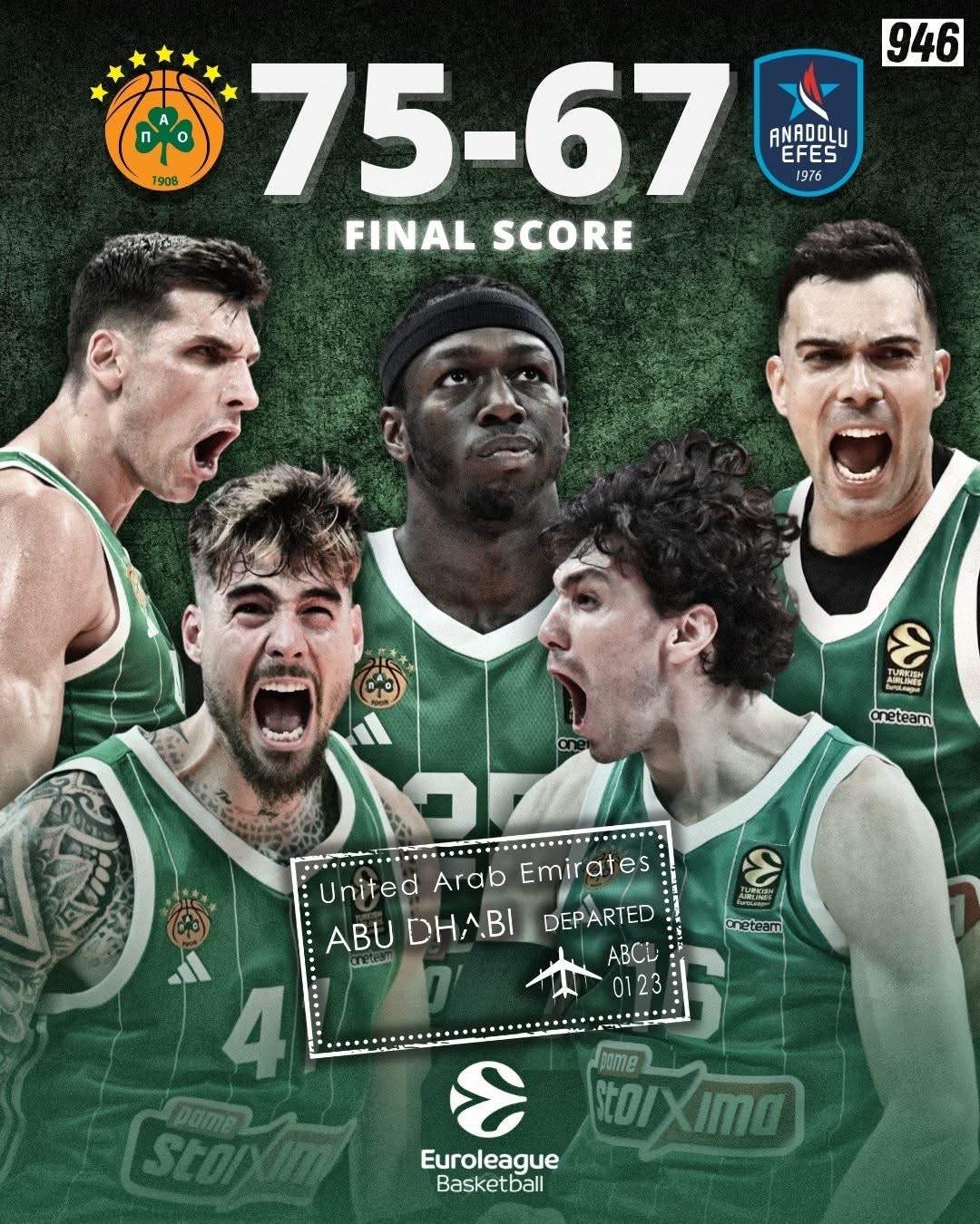 Οι πρωταθλητές Ευρώπης επικράτησαν με 75-67 της Αναντολού Εφές στο Game 5 και έγραψαν το 3-2 στη σειρά των πλέι οφ, εξασφαλίζοντας το τελευταίο «εισιτήριο» για το Άμπου Ντάμπι και «κλειδώνοντας» τη 12η συμμετοχή τους σε Final Four της Euroleague. Όπως και πέρυσι, οι «πράσινοι» θα αντιμετωπίσουν στον ημιτελικό της καταληκτικής φάσης (23/5, 21:00) τη Φενερμπαχτσέ.
