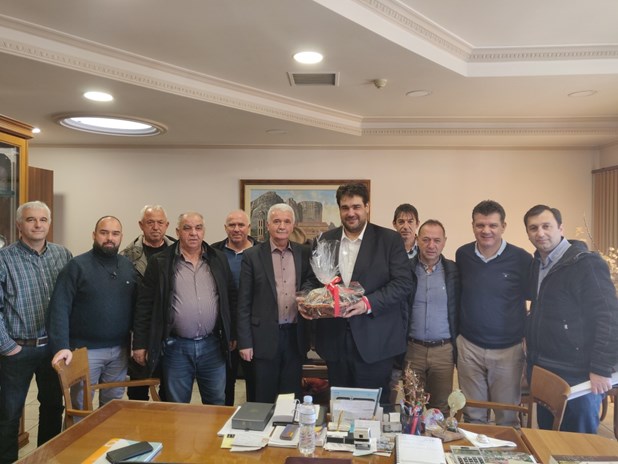 Εκεί τον υποδέχτηκε ο Δήμαρχος Μετεώρων κ. Θοδωρής Αλέκος μαζί με τους Αντιδημάρχους, τον Γενικό Γραμματέα και τους Διευθυντές του Δήμου.