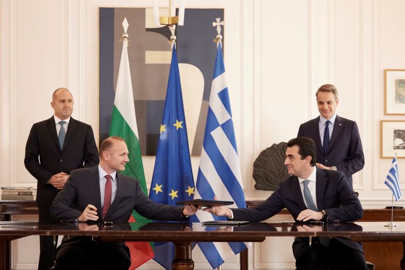 Παρουσία του Πρωθυπουργού, Κυριάκου Μητσοτάκη και του Προέδρου της Βουλγαρίας, Ρούμπεν Ράντεφ, ο Υπουργός Περιβάλλοντος και Ενέργειας, Κώστας Σκρέκας και ο Βούλγαρος ομόλογός του, Ρόσεν Χριστόφ, υπέγραψαν σήμερα στο Μέγαρο Μαξίμου, δύο νέα Μνημόνια Κατανόησης που εμβαθύνουν περαιτέρω τη στρατηγική ενεργειακή συνεργασία των δύο χωρών.