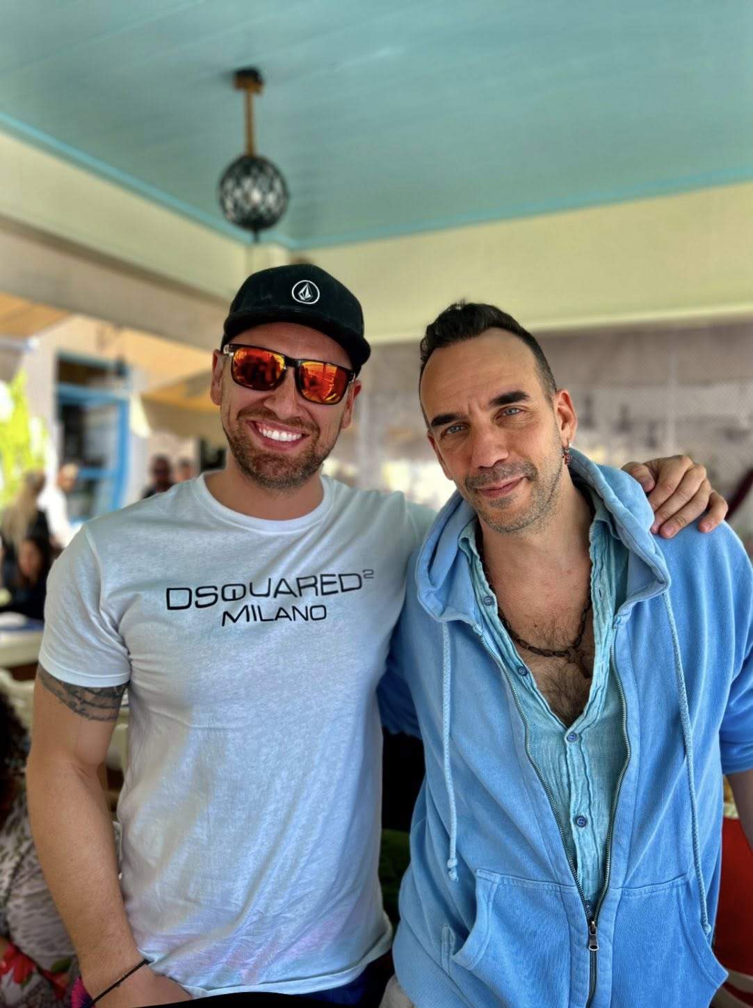 Στη Μύκονο απολαμβάνει στιγμές ξεκούρασης ο αγαπημένος καλλιτέχνης Πάνος Μουζουράκης. Κατά τη διάρκεια της παραμονής του εκεί, είχε μια φιλική συνάντηση με τον Τρικαλινό Τόλη Μουτσικόπουλο, ο οποίος βρίσκεται οικογενειακά στο νησί για διακοπές. Οι δυο τους αντάλλαξαν χαμόγελα και κουβέντες, σε μια ατμόσφαιρα χαλαρή και καλοκαιρινή.