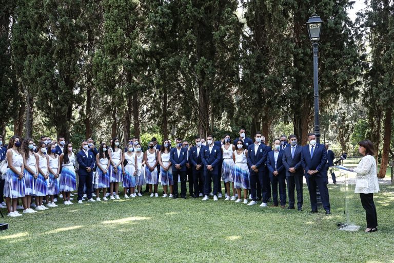 Η Πρόεδρος της Δημοκρατίας Κατερίνα Σακελλαροπούλου δέχθηκε στον κήπο του Προεδρικού Μεγάρου αθλητές και προπονητές της Ολυμπιακής ομάδας που έλαβαν μέρος στους Ολυμπιακούς Αγώνες στο Τόκιο. Την ομάδα συνόδευσαν ο Πρόεδρος της Ελληνικής Ολυμπιακής Επιτροπής και μέλος της Διεθνούς Ολυμπιακής Επιτροπής Σπύρος Καπράλος, ο αρχηγός της Ολυμπιακής Ομάδας Μιχάλης Φυσεντζίδης και ο υπαρχηγός Ιάκωβος Φιλιππούσης.
