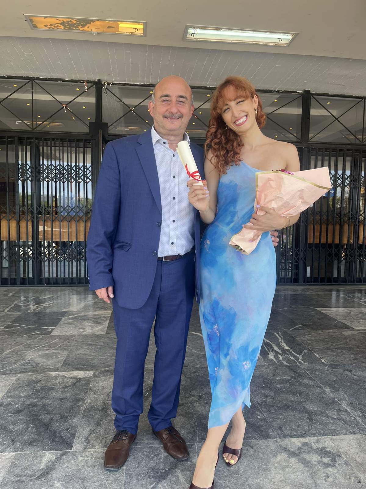 Δημητρούλα μου, δύο χρόνια μετά την αποφοίτησή σου από την Ιατρική Σχολή του Πανεπιστημίου Αθηνών με άριστα, συνεχίζεις να με γεμίζεις υπερηφάνεια και συγκίνηση.Σήμερα, με άριστα ολοκληρώνεις και το μεταπτυχιακό σου στο Αριστοτέλειο Πανεπιστήμιο Θεσσαλονίκης, με αντικείμενο τη Χειρουργική του Οφθαλμού. Με την ίδια θέληση, το ίδιο πάθος και τη δύναμη που σε χαρακτηρίζουν, ανοίγεις δρόμους και κατακτάς κορυφές. Ξέρω καλά πως τα όνειρά σου δεν έχουν όριο. Σ’ ευχαριστώ που με κάνεις κάθε φορά να νιώθω τόσο χαρούμενος και τόσο περήφανος ως πατέρας. Συνέχισε έτσι.