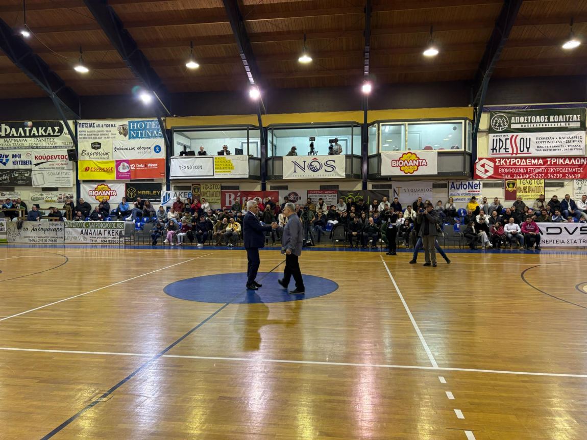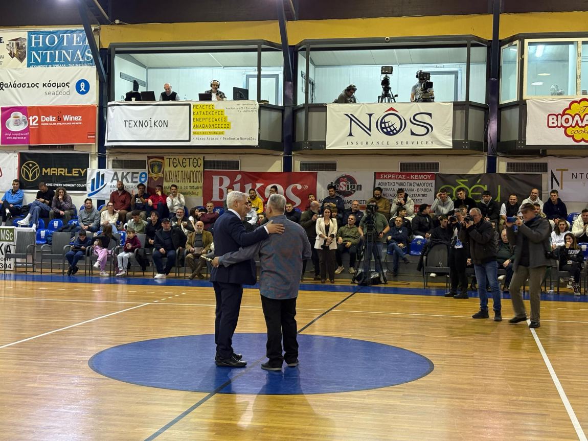 Συγκινητική τιμή στον Γιάννη Τζήμα από τον Κώστα Σκρέτα-Ο Πρόεδρος των Τρικάλων τίμησε τον Λαρισαίο προπονητή