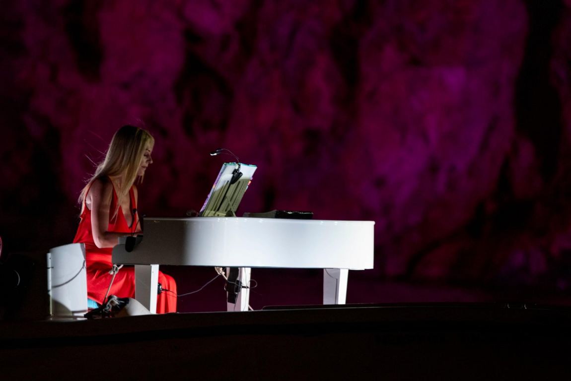 Καθώς το φως του δειλινού άρχισε να σβήνει πίσω από τα βουνά, η λίμνη μεταμορφώθηκε σε ένα καμβά χρωμάτων και αντανακλάσεων και τότε εμφανίστηκε η Έλενα Ξυδιά με το πιάνο της Ξυδιά πάνω σε μια βάρκα που αιωρείτο στα ήσυχα στα νερά, δημιουργώντας μια μαγευτική ατμόσφαιρα που μαγνήτισε τους θεατές.