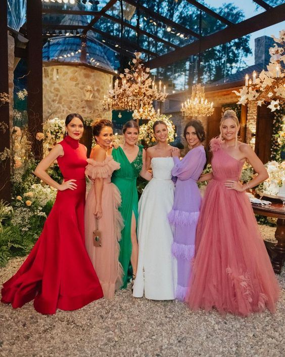 Τα φορέματα για τους καλεσμένους του γάμου διατίθενται σε διάφορες σιλουέτες,όπως εφαρμοστά, φαρδιά ή με κολακευτικά κοψίματα στη μέση.Η ποικιλία των υφασμάτων προσφέρει επίσης πολλές επιλογές,από ένα εκλεπτυσμένο σατέν φόρεμα μέχρι ντελικάτα,αεράτα που προσθέτουν γοητεία σε κάθε κίνηση.Όσον αφορά το στυλ,τα φορέματα για γαμήλια πάρτι περιλαμβάνουν και τιράντες και μια μεγάλη γκάμα από λαιμόκοψες και μανίκια που ταιριάζουν σε όλες τις προτιμήσεις.Η επιλογή φορεμάτων για εορτασμούς καλύπτει τα πάντα,από κοντά για καλεσμένες φορέματα και για κομψή,μοντέρνα εμφάνιση μέχρι αυτό το εντυπωσιακό βραδινό φόρεμα σε μεταλλικό ύφασμα ή ντραπέ σχέδιο, κοκτέιλ φορέματα με υποβλητικά σκισίματα ή όμορφα prints.