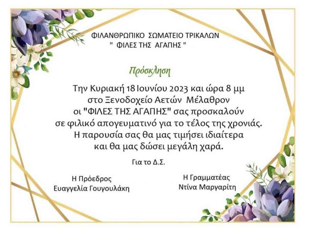 Την Κυριακή το απογευματινό από το Σωματείο ”Φίλες της Αγάπης”
