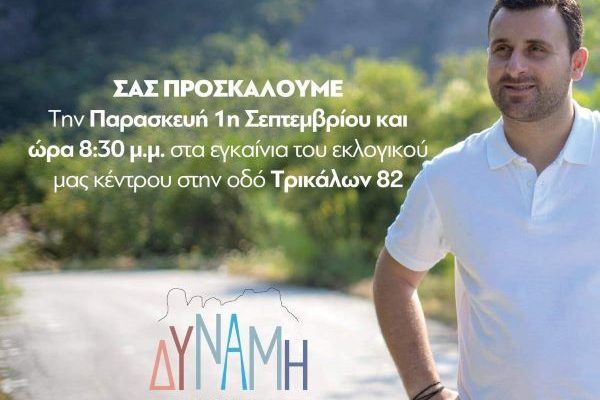Παρασκευή 1 Σεπτεμβρίου τα εγκαίνια του εκλογικού κέντρου της ΔΥΝΑΜΗΣ ΕΥΘΥΝΗΣ