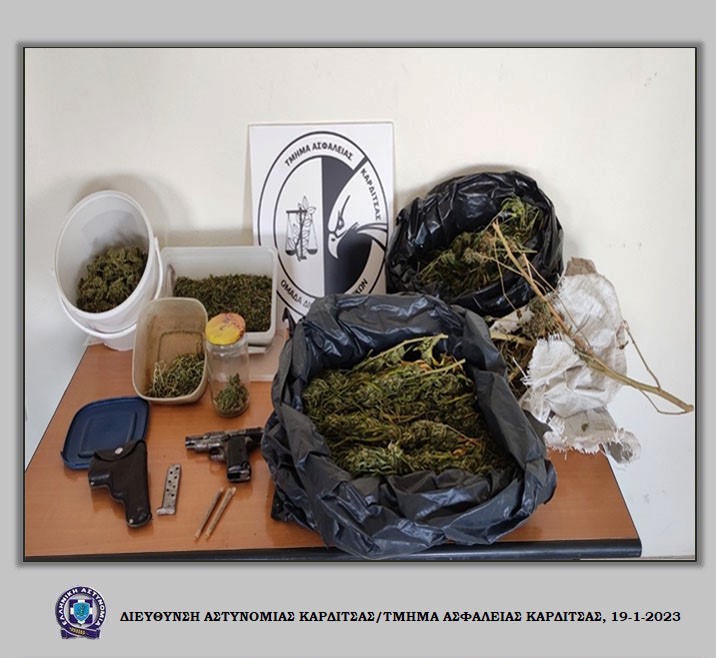 Συνελήφθη σήμερα το πρωί σε περιοχή του Δήμου Μουζακίου, από αστυνομικούς του Τμήματος Ασφάλειας Καρδίτσας, ένας Έλληνας άνδρας, σε βάρος του οποίου σχηματίσθηκε δικογραφία για παραβάσεις των νομοθεσιών περί ναρκωτικών και περί όπλων.