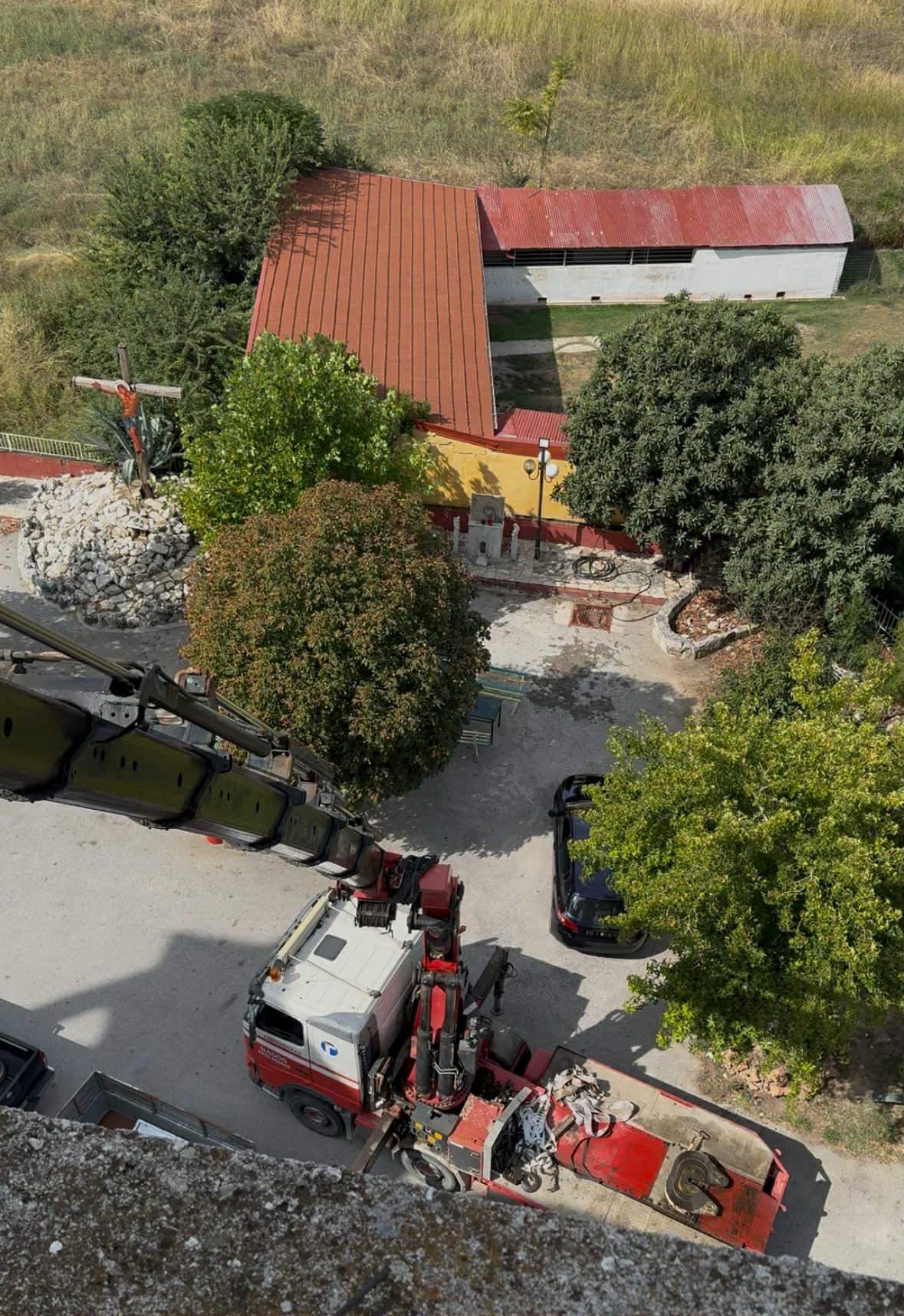 Με τη βοήθεια ειδικού γερανού, οι καμπάνες υψώθηκαν και τοποθετήθηκαν με ακρίβεια στις εσοχές του καμπαναριού, υπό την επίβλεψη τεχνικών της εταιρείας και με τη συμβολή συνεργείου που εργάστηκε με απόλυτη ασφάλεια και συντονισμό.
